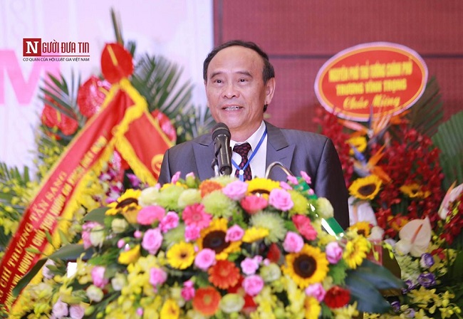 Đồng chí Nguyễn Văn Quyền, Bí thư Đảng Đoàn, Chủ tịch Hội Luật gia Việt Nam phát biểu tại hội nghị. |
