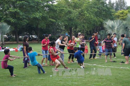 Tiết mục kéo co tại chương trình. Ảnh: Minh Lý-Phóng viên TTXVN tại Ấn Độ. |
