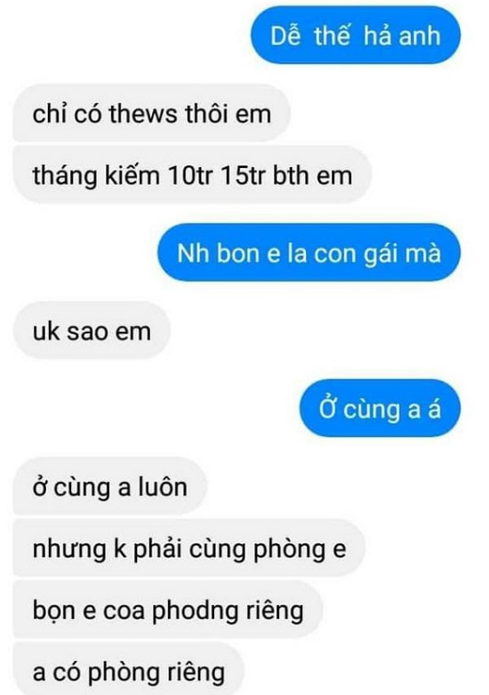 Theo mẹ của một nữ sinh, tài khoản Facebook Dương Nguyễn nhắn tin rủ rê con bà ra Hà Nội và hứa hẹn sẽ cho công việc nhẹ nhàng như rót bia và chọn bài hát, hát cùng khách, lương từ 10 - 15 triệu đồng/tháng.