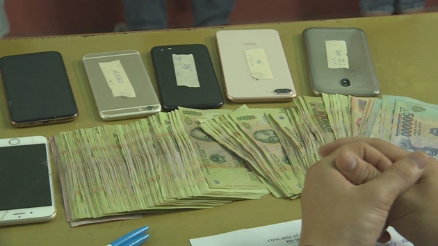 Cũng tại hiện trường, công an thu giữ tang vật: 124 triệu đồng tiền mặt, 9 điện thoại di động, 2 xe máy, 1 máy tính xách tay cùng nhiều tài liệu liên quan đến việc đánh bạc.
