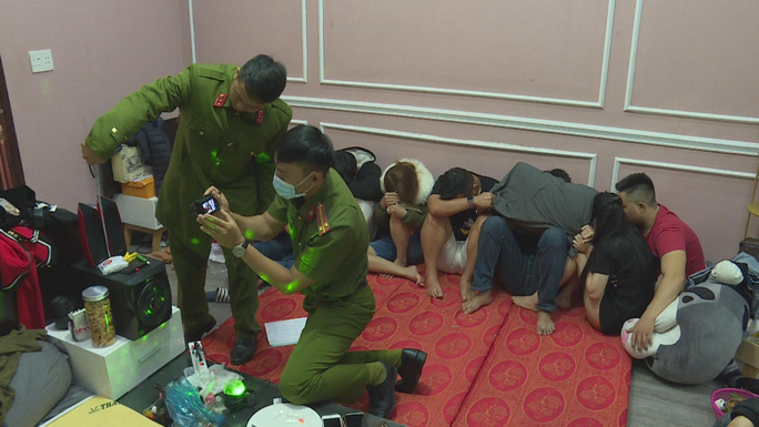Lực lượng công an bắt quả tang nhóm đối tượng sử dụng ma túy. Ảnh: Người Lao Động |