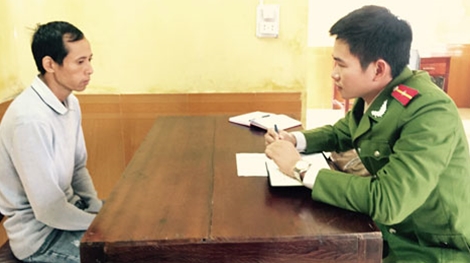 Bùi Như Sánh tại cơ quan Công an - Ảnh: báo Công an nhân dân |