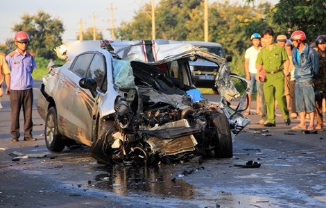 Tại hiện trường, chiếc ôtô bốn bẹp dúm, hư hỏng nặng, dấu vết tại hiện trườngcho thấy sau khi va chạm, xe bốn chỗ bị đẩy lùi hơn 10m. chiếc xe tải cũng bị lệch tay lái, đâm vào lề đường bên phải.