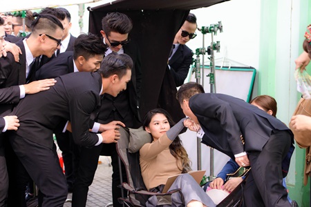 (ĐSPL) - Nam ca sỹ thể hiện nhiều cử chỉ quan tâm dành cho các diễn viên khách mời trong clip hậu trường MV “Vì anh là soái ca”.