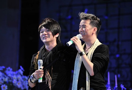 Cặp bạn thân Vũ Hà và Đàm Vĩnh Hưng. |