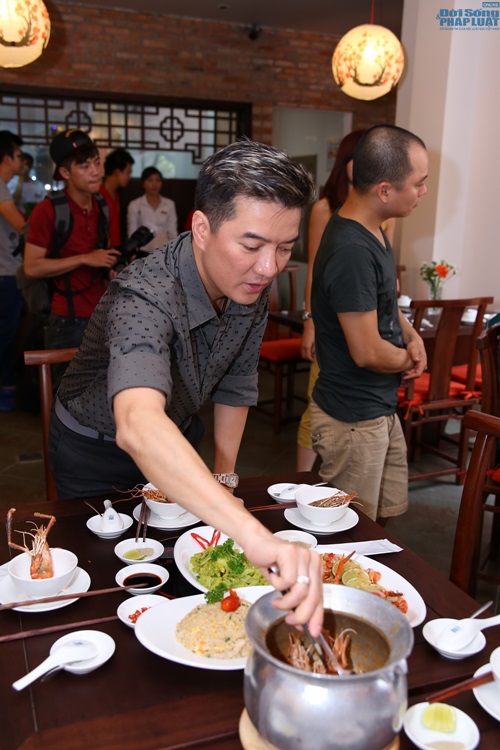 | Có mặt tại nhà hàng là ca sỹ - diễn viên Don Nguyễn, anh được Mr Đàm “rủ rê” đi theo để thưởng thức món ăn do chính tay mình nấu đãi. |