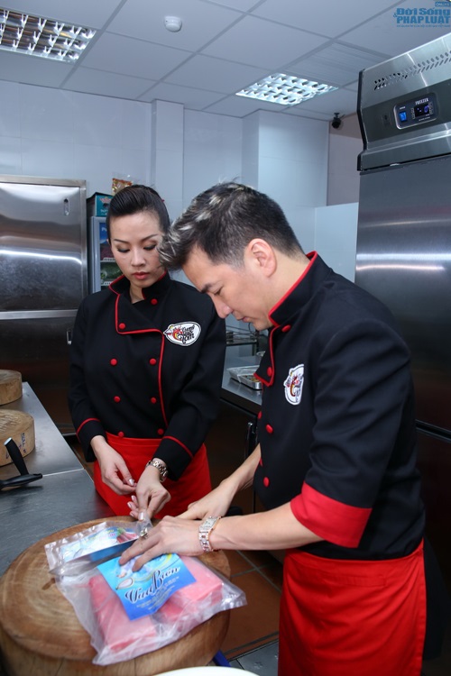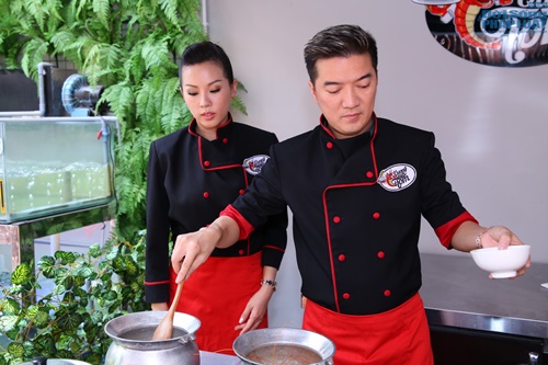 | Ca sĩ Đàm Vĩnh Hưng đã có mặt tại một nhà hàng tại trung tâm TP.HCM của Hoa hậu phu nhân Thu Hoài để trổ tài nấu món mới qua sự hướng dẫn của chính Hoa hậu này. |