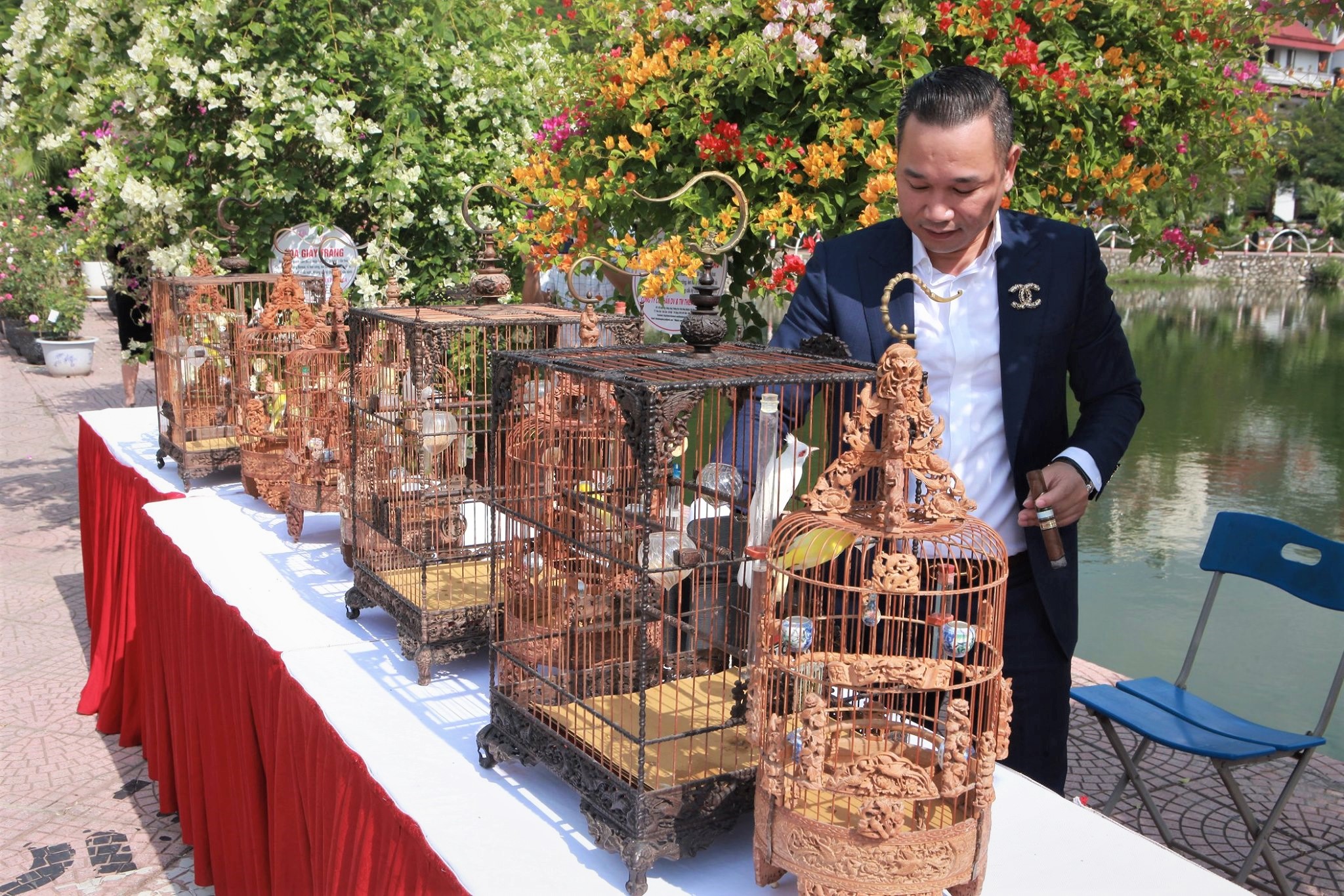 Doanh nhân Chương Tailor bên những chú chim đột biến rực rỡ sắc màu và những chiếc lồng chạm trổ công phu tinh xảo |
