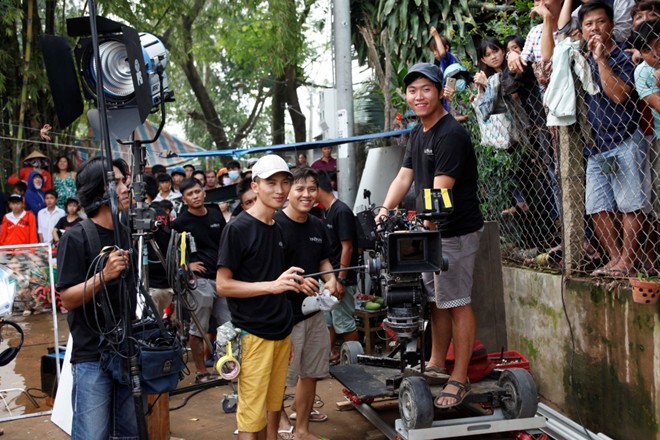 Bộ phim "Vòng eo 56" của đạo diễn Vũ Ngọc Đãng quay tại Đồng Tháp khiến người dân nơi đây hiếu kỳ, kéo đến xem Ngọc Trinh diễn xuất.