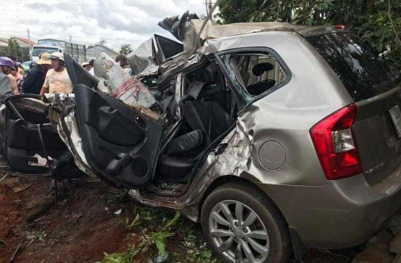 Sau khi tai nạn xảy ra, người dân phải dùng xà beng cạy cửa xe 7 chỗ đưa các nạn nhân ra ngoài, trong đó một người tử vong tại chỗ và 4 người bị thương được đưa đi cấp cứu.