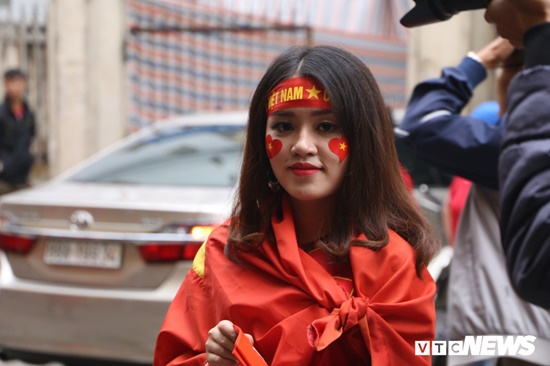 Fan nữ xinh đẹp hòa vào dòng người đổ về SVĐ Hàng Đẫy cổ vũ ĐT Việt Nam. Ảnh: VietNamNet |