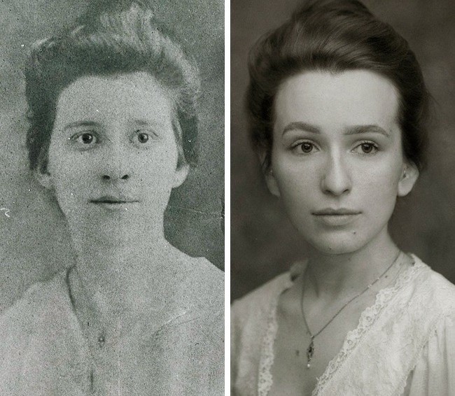 "Ảnh tôi và cụ bà 80 năm về trước". |