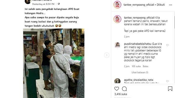 Erick Thohir, Bộ trưởng phụ trách các doanh nghiệp nhà nước tại Indonesia, cũng công khai lên tiếng phản đối việc hai người dân mặc đồ bảo hộ y tế để ra đường.
