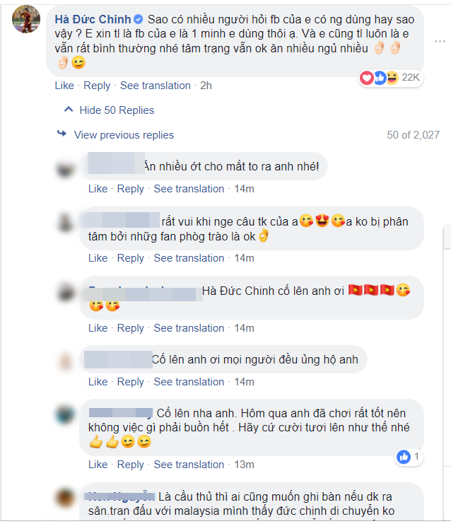 Xuất phát từ suy nghĩ này, nhiều CĐV quá khích kéo vào facebook của Chinh. Đáng chú ý là thay vì im lặng hoặc giải thích, Đức Chinh đã đáp trả lại từng comment tiêu cực. Hành động này khiến nhiều người giật mình vì thường ngày, Chinh khá vui tính và chưa khi nào ứng xử cộc cằn như vậy.