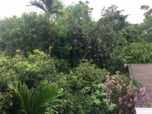 Cổng chính nhà mình đó. Bên trái là cây xoài trĩu quả. Đang vào mùa nên xoài cực nhiều ở Việt Nam, vì thế mà giá khá rẻ, chỉ khoảng 0,4 USD (tầm 9.000 đồng/cân). Xoài không chỉ để thu hoạch mà còn trồng để lấy bóng mát.