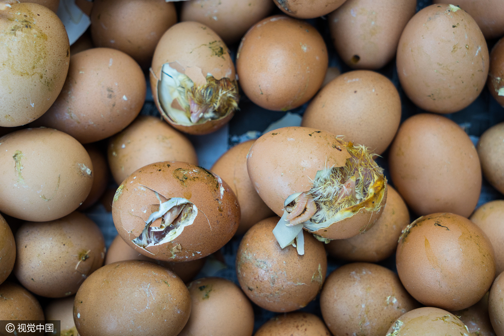 Theo đó, có thể nhìn thấy khá nhiều chú gà con đang cố gắng nứt vỏ chui ra từ những quả trứng đang được xếp chồng lên nhau.