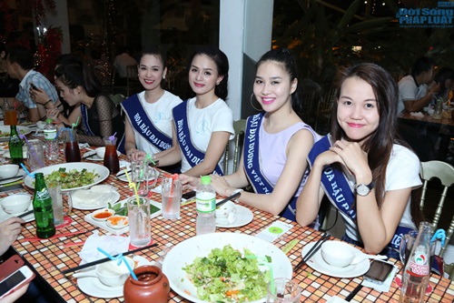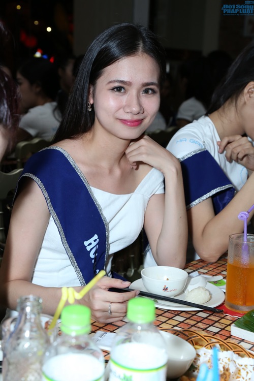 | Mặc dù đang phải giữ gìn sắc vóc cho cuộc thi nhưng các thí sinh có vẻ như khá mệt sau chặng đường từ vòng sơ tuyển cho đến bây giờ, nên họ ăn uống khá thoải mái, trò chuyện rôm rả cùng nhau và không quên chụp hình chung để làm kỷ niệm. |