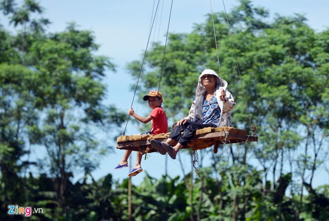 Và cứ như thế hàng ngày người dân vẫn di chuyển bằng cáp treo tự chế qua con sông này. Chị Tâm, một người dân tại thôn Mai Châu cho biết, ban đầu cảm giác rất sợ nhưng rồi đi mãi cũng thành quen. |