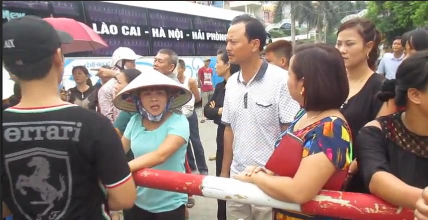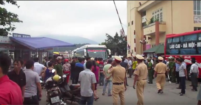 Người dân vây kín bến xe Lào Cai phản đối việc bến này dời sang địa điểm mới. |