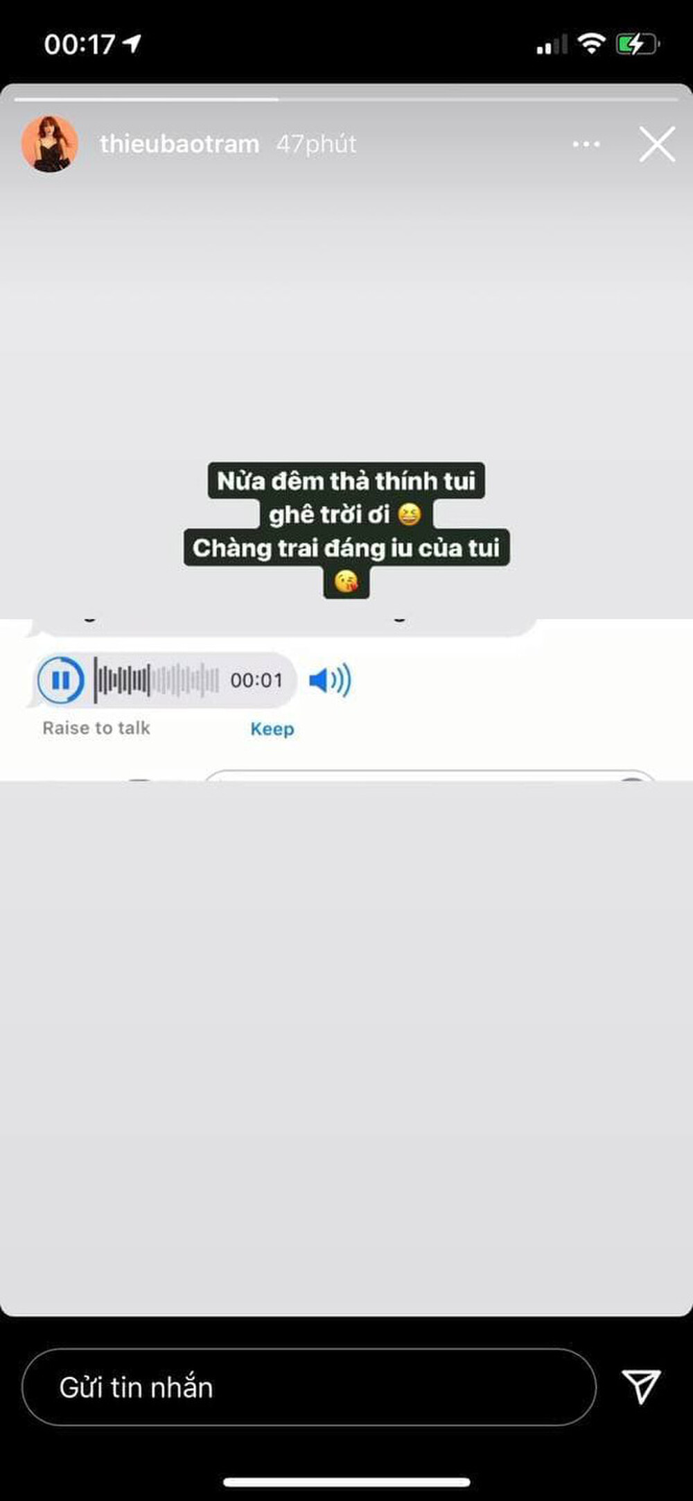 Thiều Bảo Trâm khoe được "trai lạ" thả thính. |