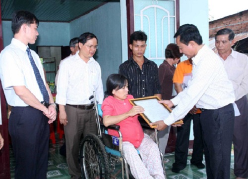 Trao quyền sở hữu nhà tình nghĩa do TTXVN tặng cho một nạn nhân chất độc da cam/điôxin ở tỉnh Bình Phước. Ảnh: Đình Huệ/TTXVN |