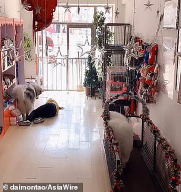 Theo Daily Mail, sự việc xảy ra ở một cửa hàng thú cưng ở thành phố Cáp Nhĩ Tân, tỉnh Hắc Long Giang (Trung Quốc) vào hôm 18/4 vừa qua. Một nhân viên của cửa hàng (chưa xác định danh tính) bất ngờ chóng mặt rồi ngã vật xuống sàn. Vào thời điểm đó, hai chú chó giống husky tên Alaska và Samoyed đang tập thể dục trên máy chạy bộ.