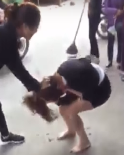 Đoạn clip ghi lại hình ảnh cô gái trẻ bị đánh ghen, bắt quỳ gối xin lỗi vợ “người tình” ngay giữa phố xuất hiện trên mạng, gây xôn xao dư luận. |