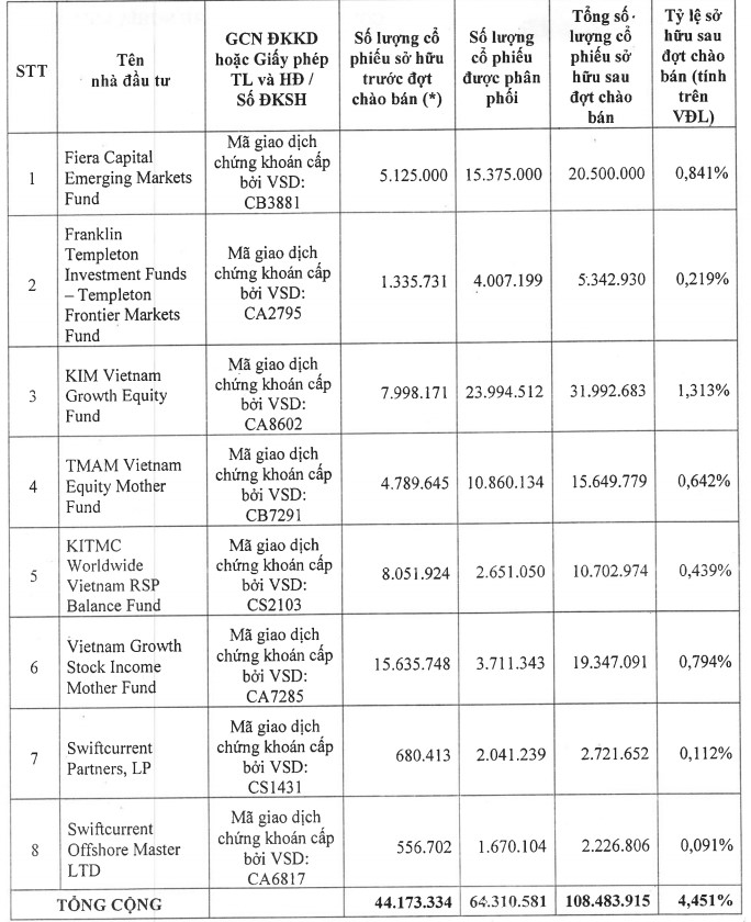 Ngân hàng đã phân phối 64,3 triệu cổ phiếu với giá bán 27.000 đồng/cổ phiếu cho các nhà đầu tư, qua đó thu về 1.736 tỷ đồng.
