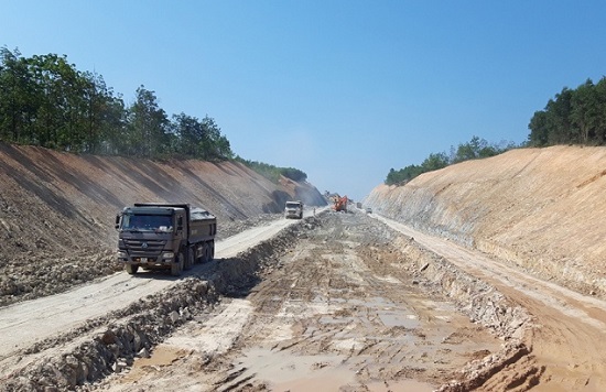Thi công cao tốc Cam Lộ - La Sơn. Ảnh: Báo Giao thông |