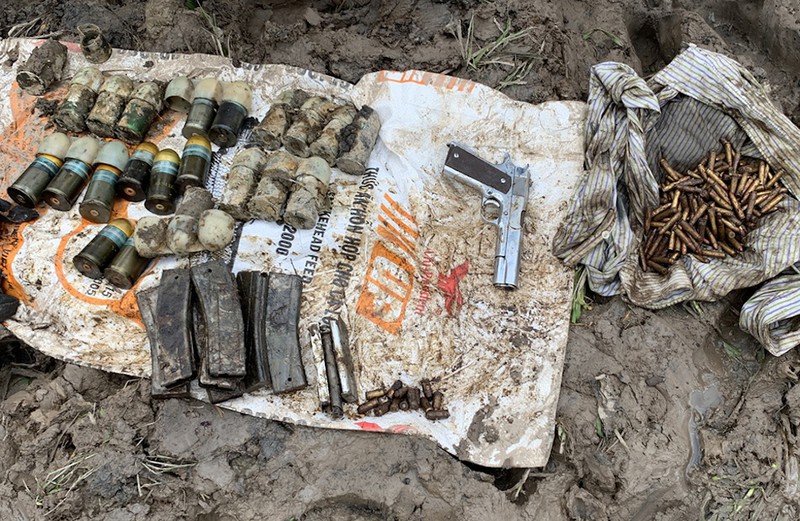 Kết quả kiểm tra ban đầu cho hay, lực lượng chức năng phát hiện có một khẩu súng ngắn Colt 45; ba hộp tiếp đạn và 12 viên đạn Colt; bảy hộp tiếp đạn và 216 viên đạn Carbine và 26 quả đạn M79 (trong đó 10 quả còn nguyên vẹn).
