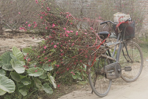 | Nhiều hộ dân tích cực chuyển đào từ ruộng lên xe để đem xuống phố bán |