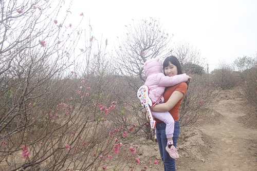 | Vẻ rực rỡ của đào khiến nhiều người thích thú và dừng lại chụp ảnh, đón không khí xuân sớm |
