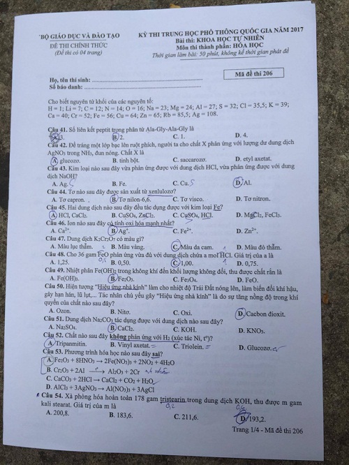 Đáp án đề thi môn Khoa học tự nhiên môn Vật Lý - Hóa học - Sinh học mã đề 206. Cập nhật đáp án gợi ý môn Khoa học tự nhiên môn Vật Lý - Hóa học - Sinh học trong khi chờ đáp án chính thức của Bộ GD-ĐT.