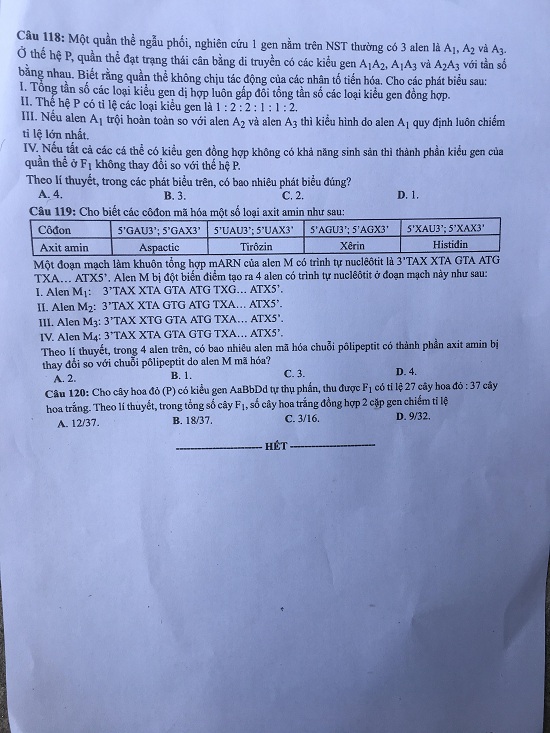 (Ấn F5 đề cập nhật đáp án gợi ý Khoa học tự nhiên mã đề THPT quốc gia 2019 nhanh nhất, chuẩn nhất)