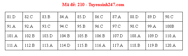 Đáp án gợi ý môn Sinh học THPT quốc gia 2019 mã đề 210. Nguồn: Tuyensinh247.com |