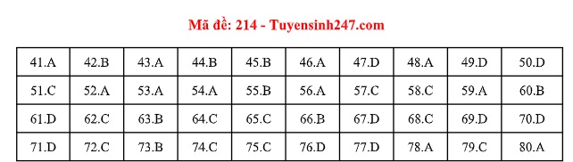 Đáp án gợi ý môn Sinh học THPT quốc gia 2019 mã đề 214. Nguồn: Tuyensinh247.com |