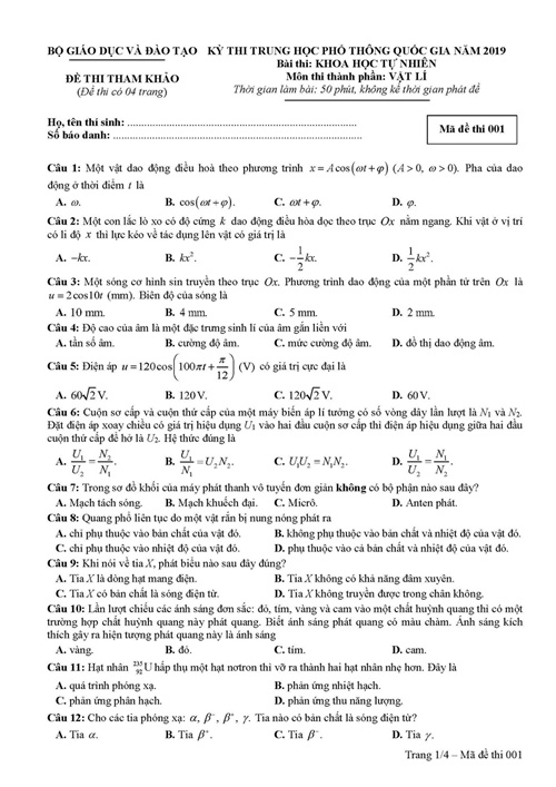 Xem đáp án môn Khoa học tự nhiên tất cả các mã đề THPT quốc gia 2019 TẠI ĐÂY.