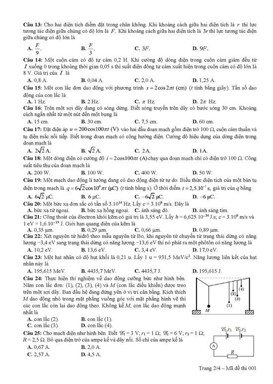 Đáp án gợi ý môn Vật lý THPT quốc gia 2019 mã đề 223. Nguồn: Tuyensinh247.com |