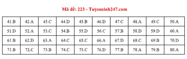 Đáp án gợi ý môn Sinh học THPT quốc gia 2019 mã đề 223. Nguồn: Tuyensinh247.com |