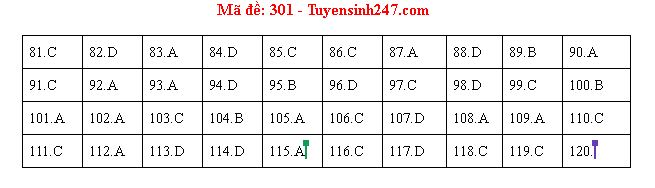 Đáp án tham khảo môn Địa lý mã đề 301:
