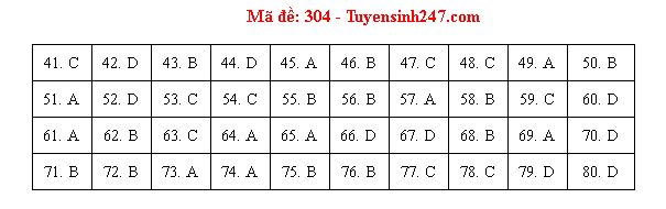 Đáp án gợi ý môn Địa lý mã đề 304: