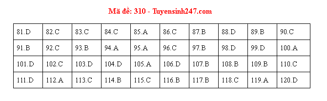 (Ấn F5 để cập nhật đáp án gợi ý môn Khoa học xã hội Lịch sử - Địa lý – Giáo dục công dân mã đề 310 THPT quốc gia 2019 nhanh nhất, chuẩn nhất).
