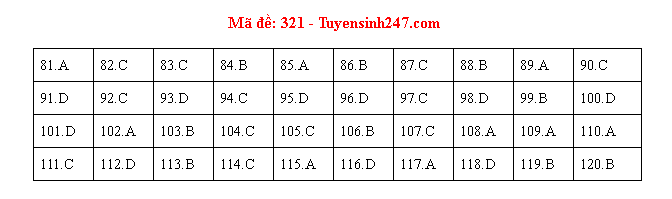 (Ấn F5 để cập nhật đáp án gợi ý môn Khoa học xã hội Lịch sử - Địa lý – Giáo dục công dân mã đề 321 THPT quốc gia 2019 nhanh nhất, chuẩn nhất).