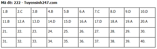 - Gợi ý đáp án môn Sinh học - mã đề 222