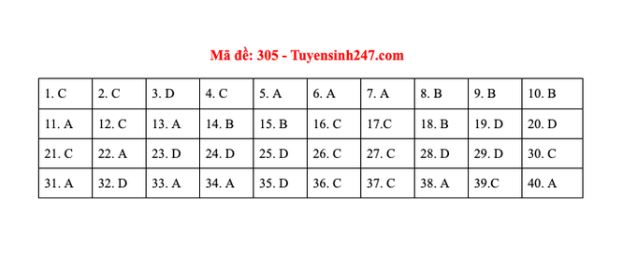 (Ấn F5 để cập nhật đáp án gợi ý môn Lịch sử mã đề 305 tốt nghiệp THPT 2020)