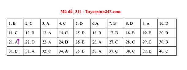 Đáp án, đề thi môn Lịch sử mã đề 311 tốt nghiệp THPT 2020 chuẩn nhất. Cập nhật đáp án gợi ý môn Lịch sử mã đề 311 chuẩn nhất, chính xác nhất thi tốt nghiệp THPT 2020.