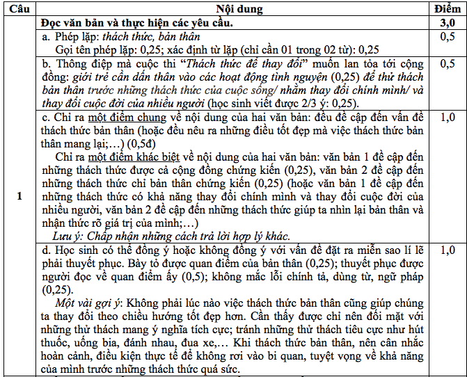 Đáp án gợi ý môn Ngữ Văn thi vào lớp 10 tại TP.HCM - Nguồn: Hocmai.vn - cập nhật lúc 11h10 ngày 16/7