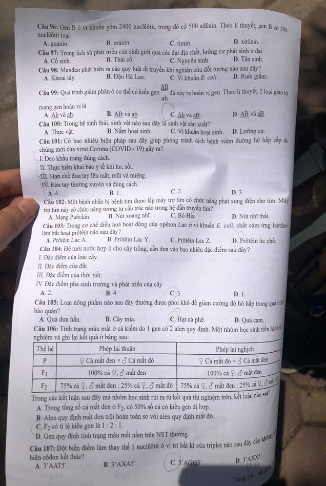 (Ấn F5 để cập nhật đáp án gợi ý môn Sinh học mã đề 205 tốt nghiệp THPT 2020)