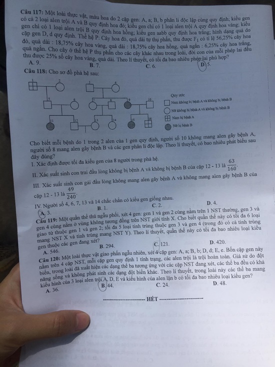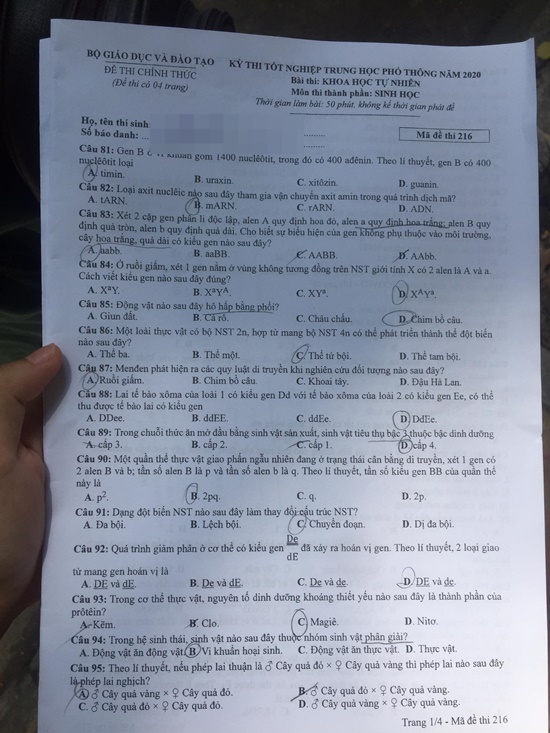 Đề thi môn Sinh học mã đề 216 tốt nghiệp THPT 2020 cập nhật lúc 10h45 ngày 10/8/2020. |