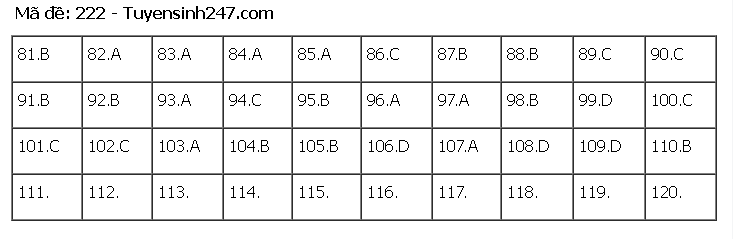 (Ấn F5 để cập nhật đáp án gợi ý môn Sinh học mã đề 222 tốt nghiệp THPT 2020)